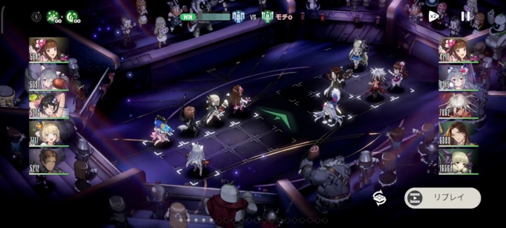 上位帯では、①上段4体+下段1体、②上段1体+下段4体 のような防衛陣形を結構見かけるのですが、この2つに強く出られるように攻撃陣形を組んでいるように見えました。